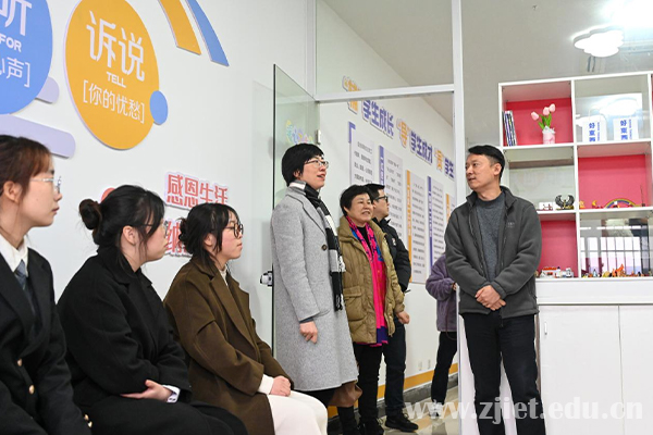 12月2日下午,浙江省高校学生心理健康教育工作标准化建设实地调研专家组组长、浙江水利水电学院党委副书记吴小英一行实地调研学校学生心理健康教育工作标准化建设工作。专家组成员由杭州师范大学学工部部长金向华、浙江金融职业学院学生处副处长叶星、浙江大学心理中心副主任祝一虹、浙江中医药大学心理中心主任汪磊等组成。本次实地调研主要包括现场汇报会、调研访谈、资料查阅和专家反馈会等四项内容。