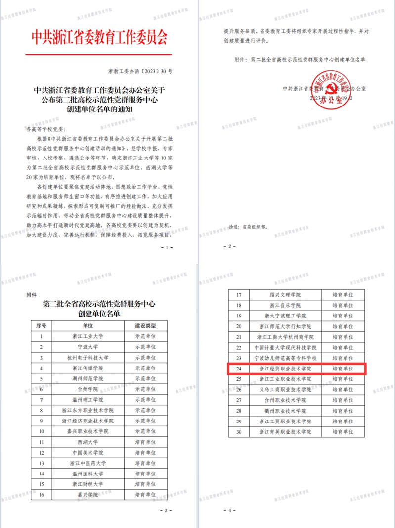 近日,浙江省教育厅公布了第二批高校示范性党群服务中心创建单位名单,我校党群服务中心成功入选培育单位。